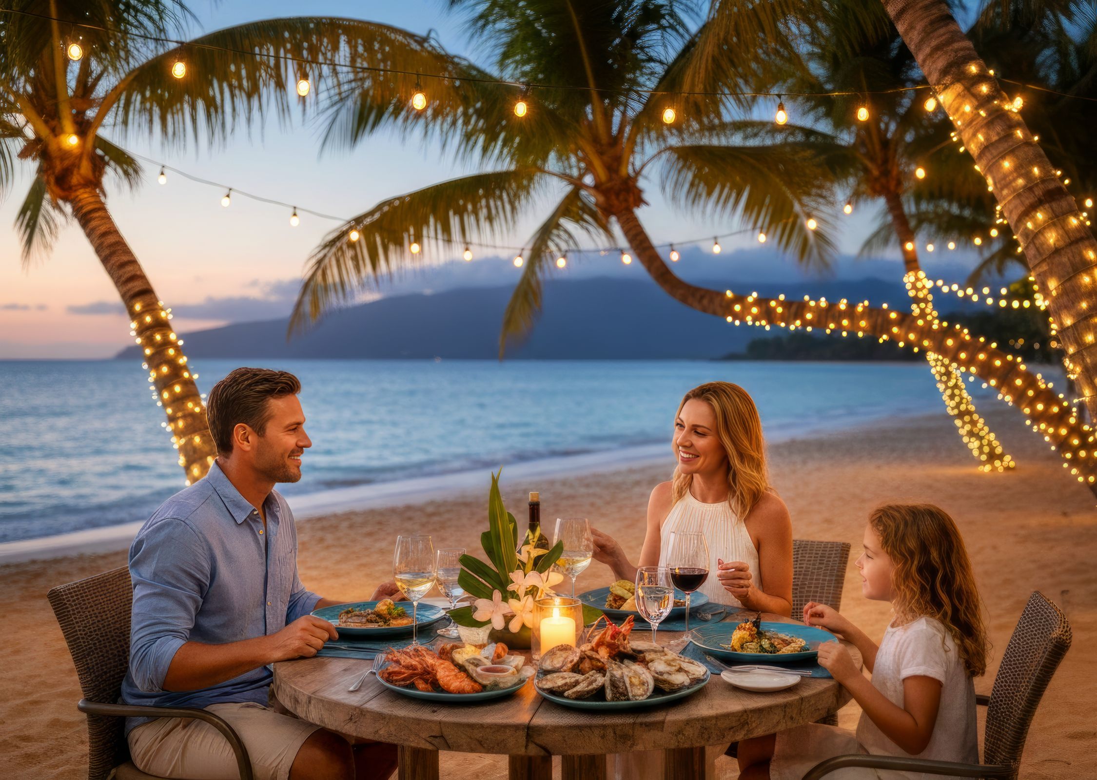 - Day 1: Easy beach morning, long lunch, pool reset, early dinner near your base area.